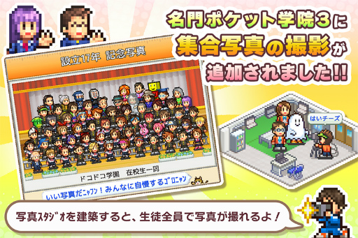 名門ポケット学院3 校歌や集合写真の撮影を追加するアップデートを実施